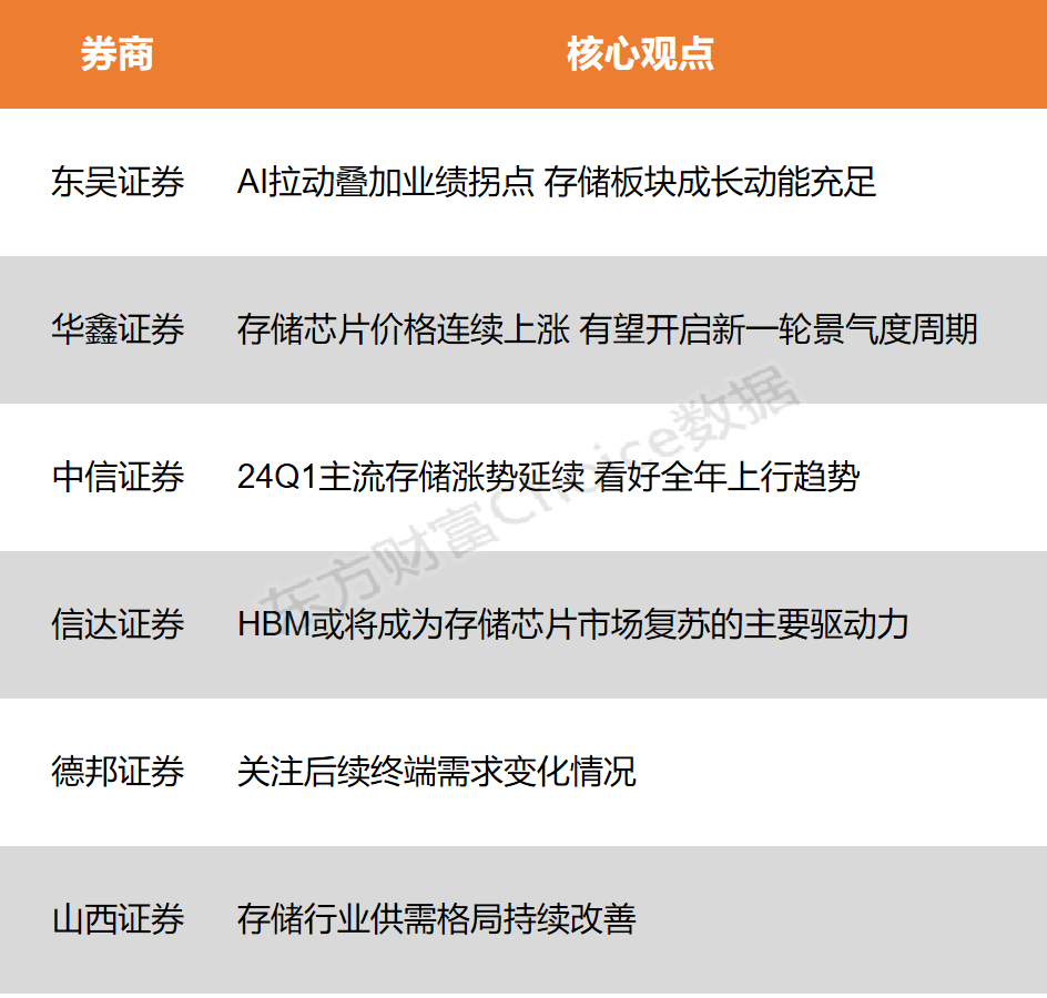 中信证券:24Q1主流存储涨势延续 看好全年上行趋势