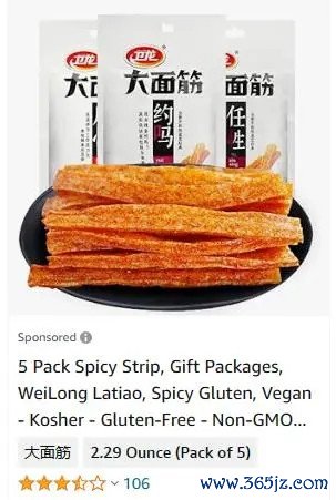 就连平时高高在上的欧美人,此番也对这个小小的辣条低头了。去年就有一张辣条"天价照"在网上火传,5包65克的卫龙辣条,在美国卖到了惊人的16.99美元,折合人民币将近25元一包!比国内市场价格足足贵了十几倍。